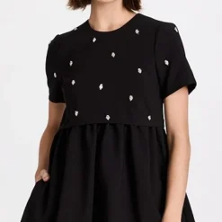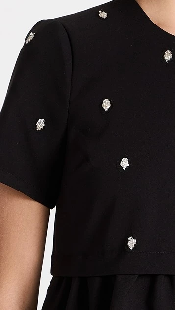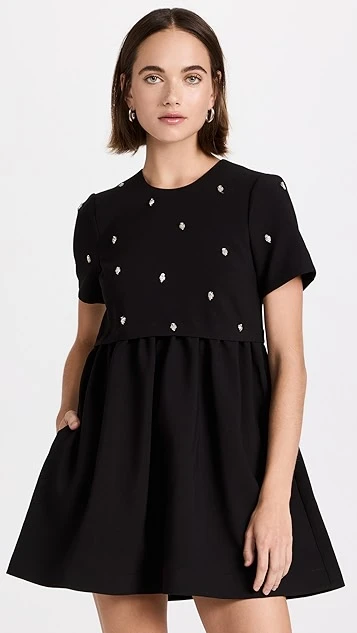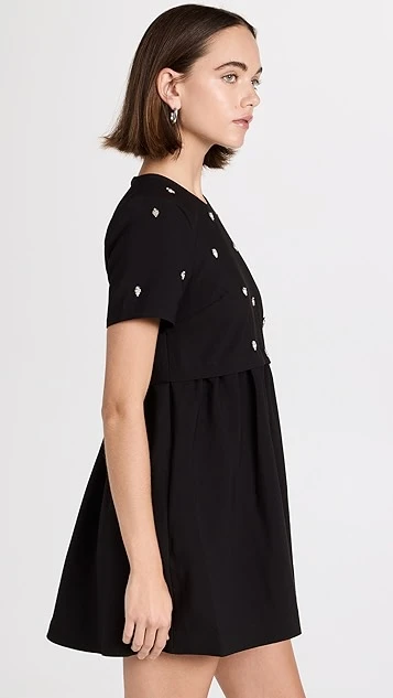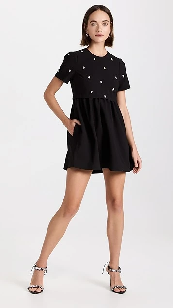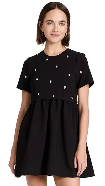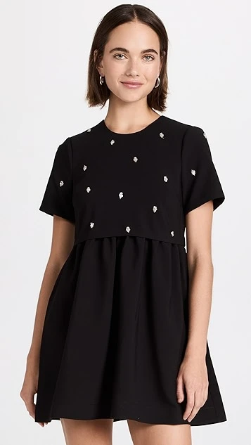 A black LIKELY mini dress for Saturdays and special occasions alike. This piece draws the eye with a tee-style bodice that’s embellished with a sparse collection of crystals. Wear yours with a tonal pair of heeled sandals.