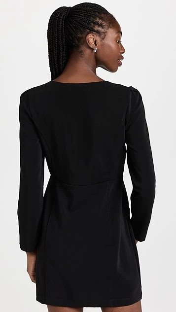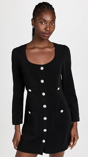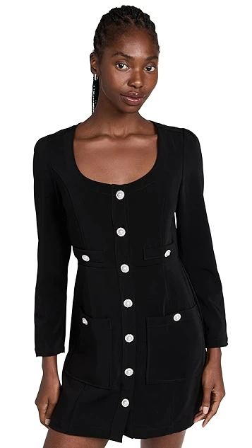 The perfect midpoint between polished, utilitarian, and casual, this black Line & Dot Alexis mini dress features a scoop neckline, patch front pockets, and faux-pearl contrast buttons. To complete your outfit, all you’ll need are kitten heels and crystalline earrings.