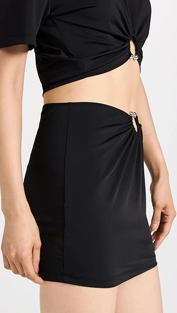 An inset metal ring brings a unique gathered effect to the waist of this sleek Lioness miniskirt. Go for the full-length look by pairing this piece with the label’s matching top.