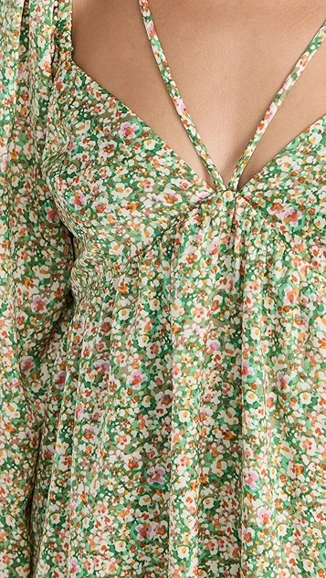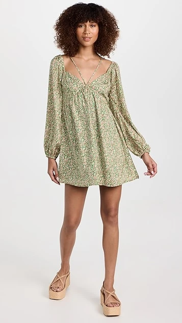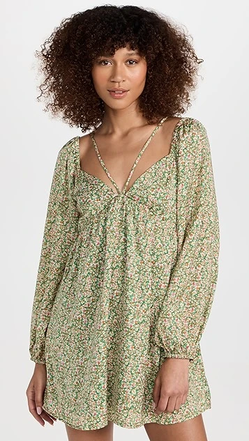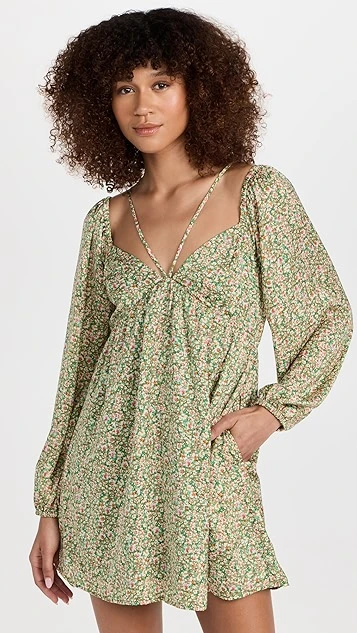 A charming Lost + Wander mini dress in a classic babydoll silhouette, detailed with a ditsy floral print and designed with slender straps at the sweetheart neckline.