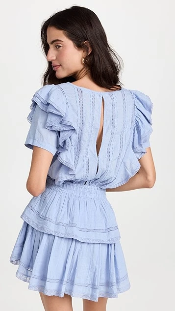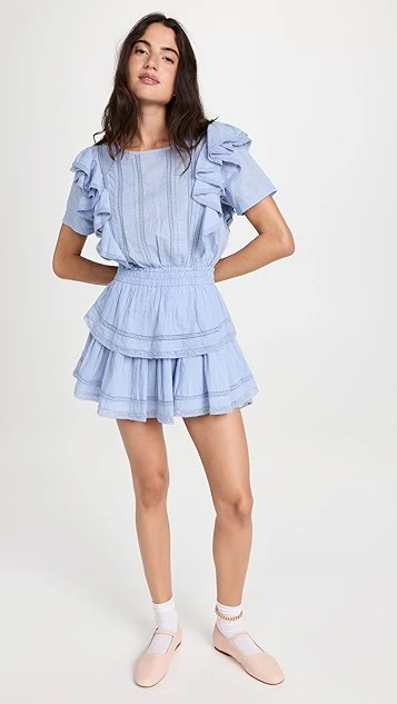 - Tiered skirt and ruffle trim