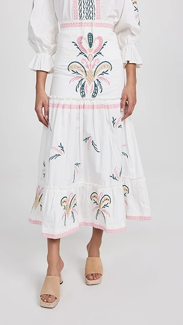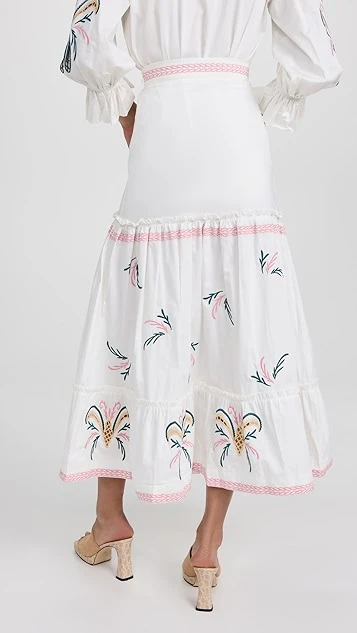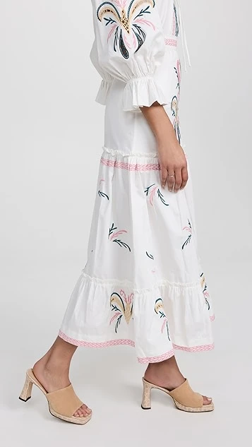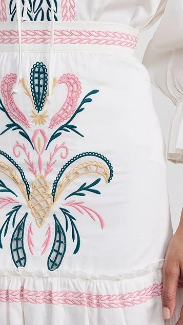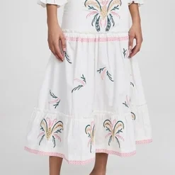 - Tiered skirt and gathered seams