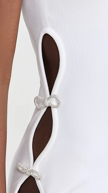 - Scallop cutouts at sides with crystal embellished bow accents