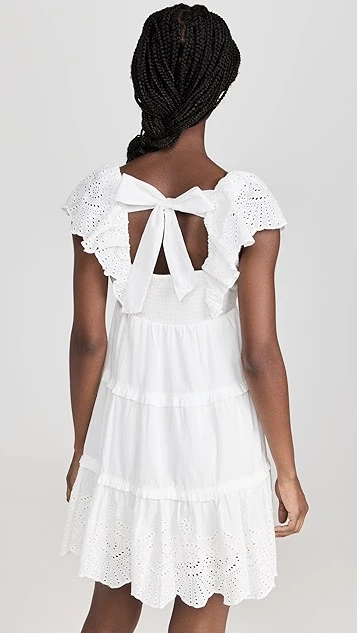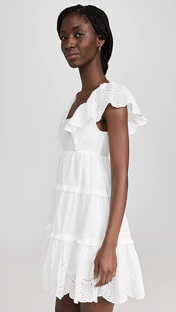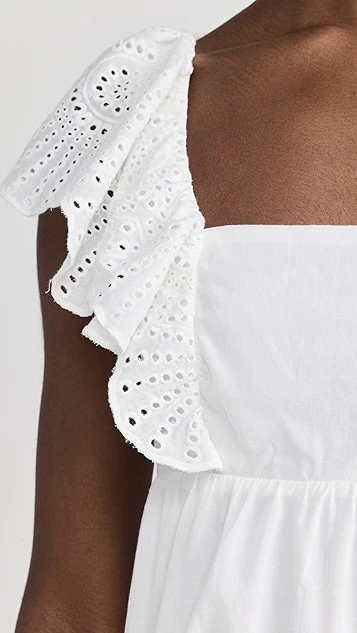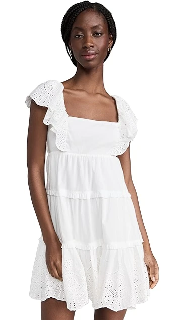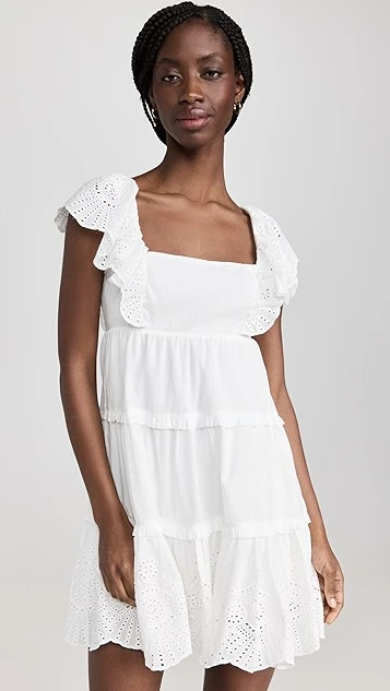 Ready for spring and summer in bright-white cotton, this MINKPINK mini dress features an easy babydoll silhouette, and is accented with touches of eyelet embroidery at the ruffly shoulders and hem. To complete your outfit, all you’ll need are simple heeled sandals and subtle hoop earrings.
