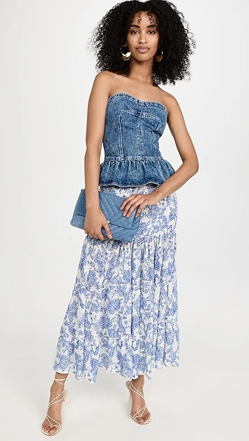 - Gathered skirt and ruffle hem