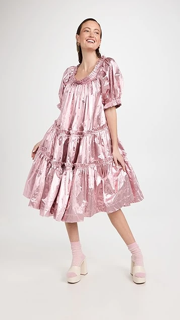 - Tiered design with ruffle trim