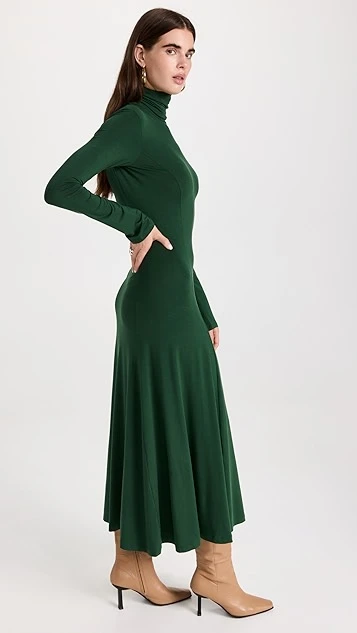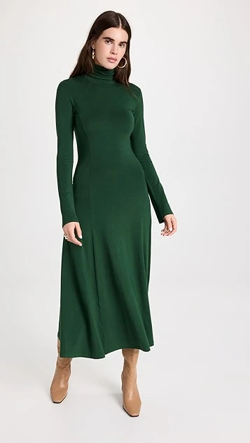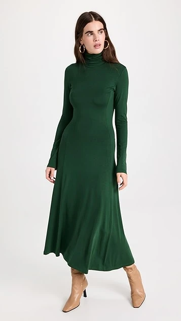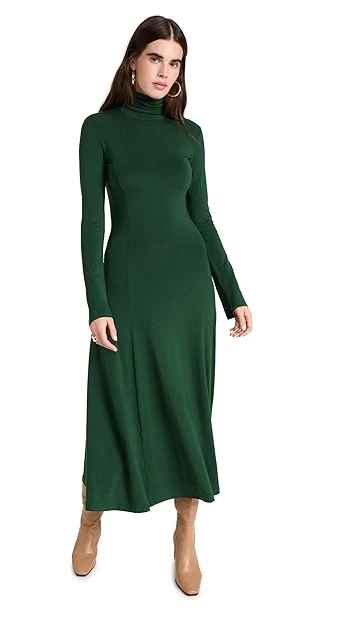 Clean lines and deep color are the story with this elevated yet everyday friendly Ninety Percent turtleneck dress. This maxi is designed to gently hug your figure through the hips, before finishing with a drifty skirt. We especially like this piece when it’s paired with leather boots.