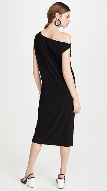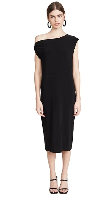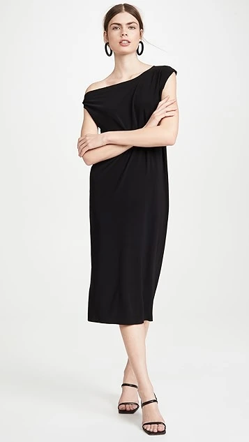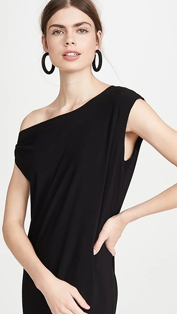A comfortable, versatile look in slinky black jersey, this Norma Kamali dress is enhanced with a one-shoulder neckline for a simple piece thatโs easy to dress up or down to suit the occasion.