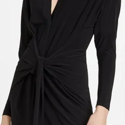- Attached wrap ties at waist
