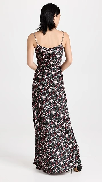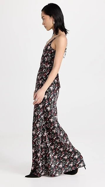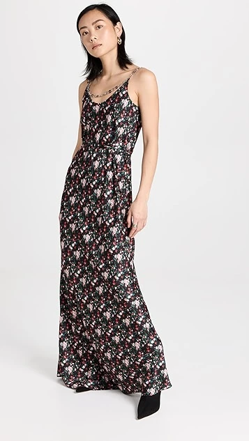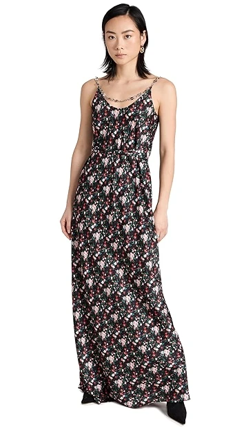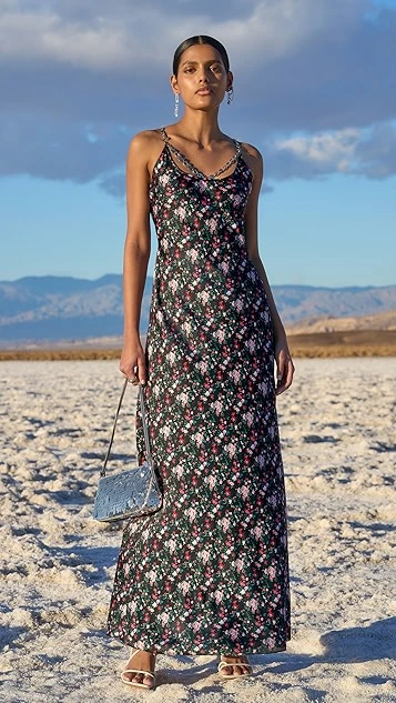 - Silver-tone chain straps and draped accents