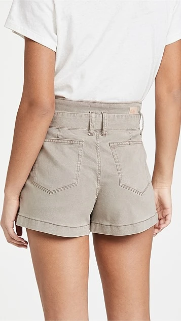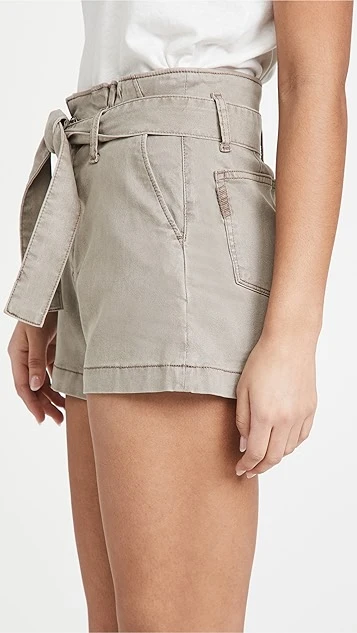 PAIGE takes a dusty earth-tone pair of weekend-ready shorts in a more polished direction, thanks to waist-defining ties and a pleated waistband.