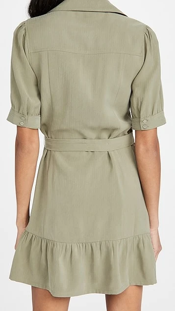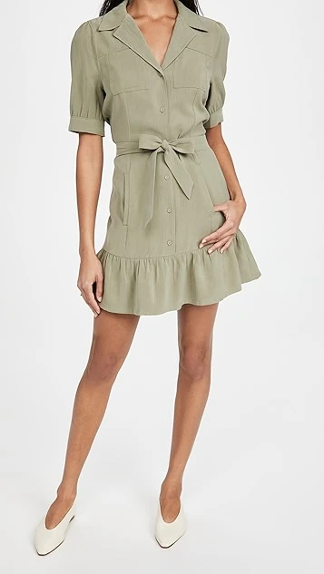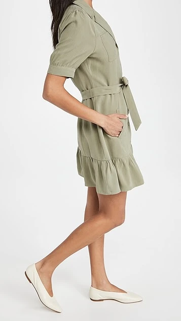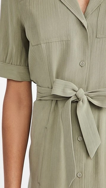 Matte fabric with subtle herringbone patterning composes this low-key PAIGE dress, which gains a touch of utilitarian style from patch pockets and notched lapels.