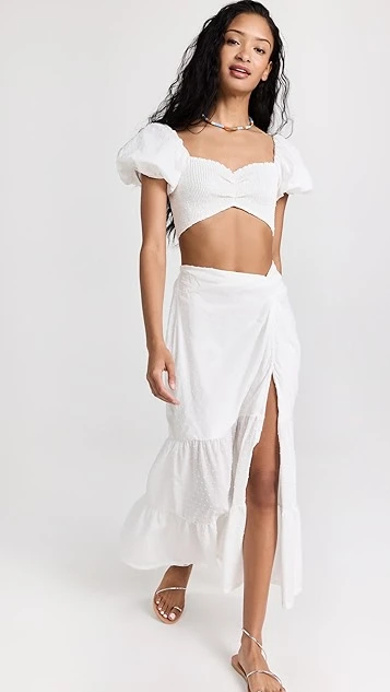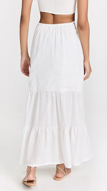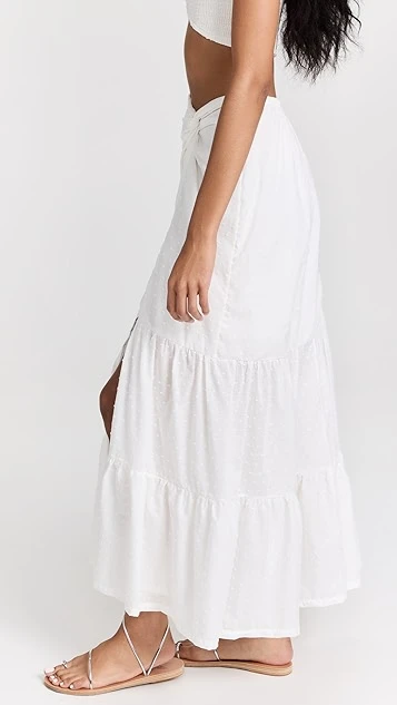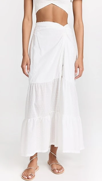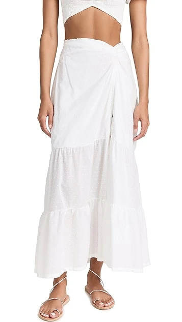 Petite flocked dots cover this monochrome skirt, a vacation must-pack from the swim specialists at Peixoto. A subtle twist adds a touch of extra emphasis to the deep front slit.