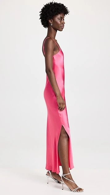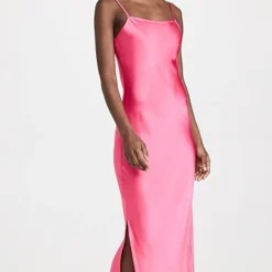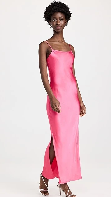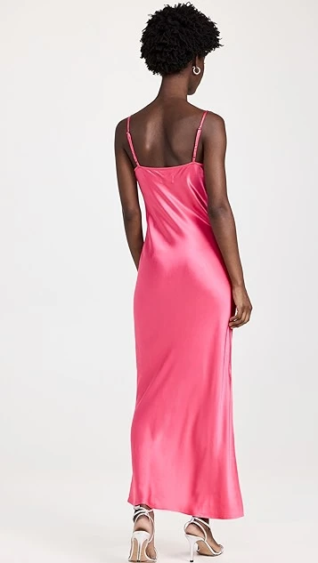 A truly timeless night-out option, this Pistola Denim slip dress draws the eye with shimmery pink charmeuse. A deep side slit helps relax the fit. To complete your outfit, add the tonal heels of your choice.