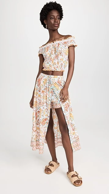 - Smocked elastic waistband and hidden zip at back