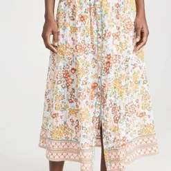 - Tiered hem with embroidered cross stitching