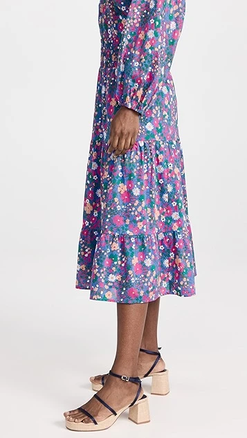 - Tiered seams and ruffle hem