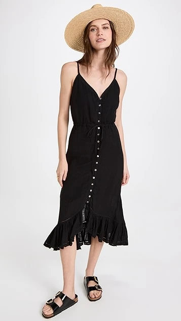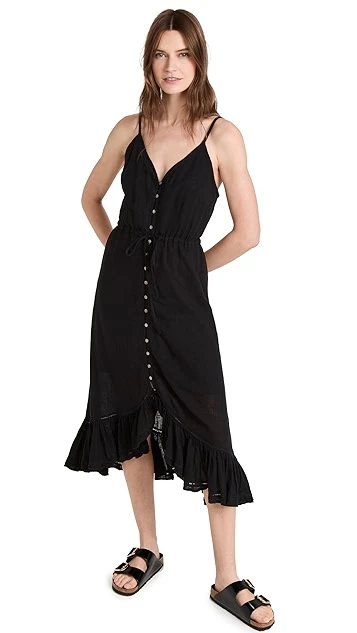 Another must-have from the specialists in everyday essentials at RAILS. This low-key midi dress is crafted from black, feather-light fabric, and is embellished with pleats at the hem. Go with tonal flats to round out your outfit.