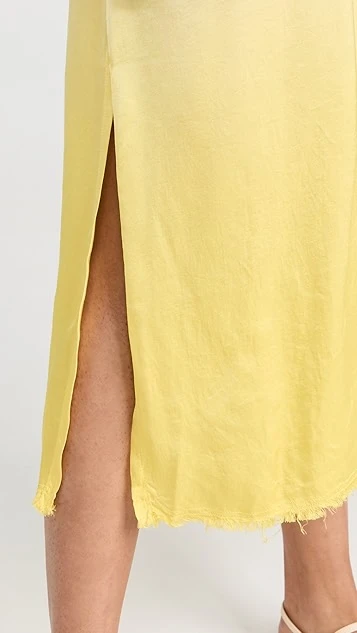 - Side slits at frayed hem