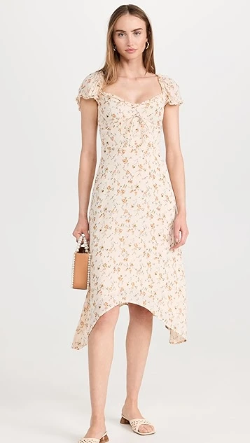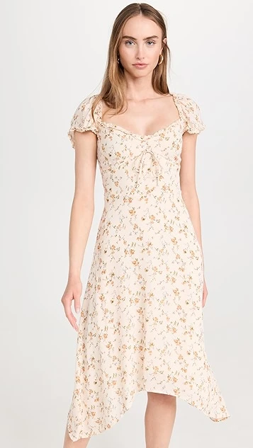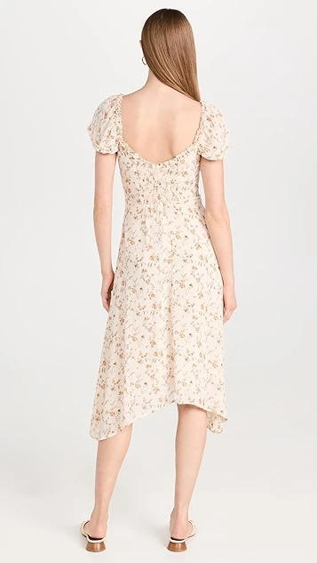 - Puff cap sleeves with scallop trim