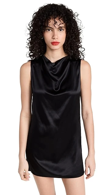 This night-out-ready Reformation mini dress keeps things classic with pure black silk and a slightly slimmed shift silhouette. Lean into the minimalist feel of this piece by pairing it with tonal heels.