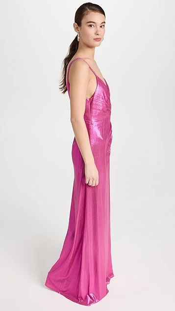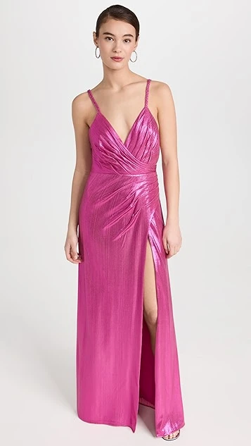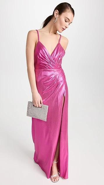 - Pleated bodice with surplice neckline
