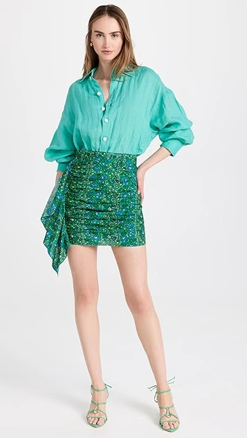 Lavishly patterned and delicately ruched, this RHODE miniskirt will be a polished alternative to your usual jean shorts. We particularly like the looks of this piece when it’s paired with a linen button down shirt.