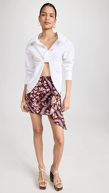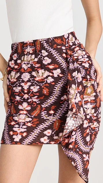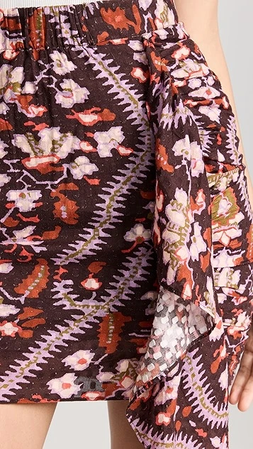 An elevated alternative to your usual cutoffs, this RHODE Hannah skirt draws the eye with vivid patterning and an asymmetrical arrangement of ruffles.