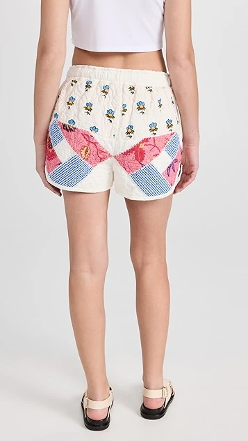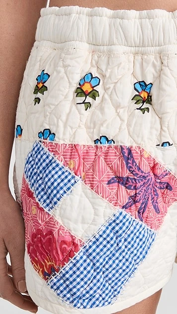 - Patchwork design with blanket stitch trim