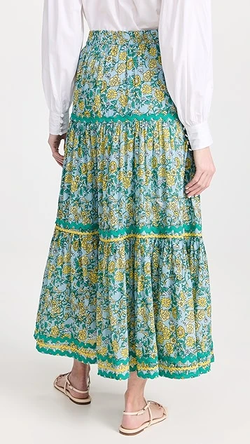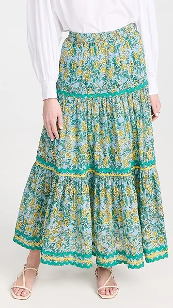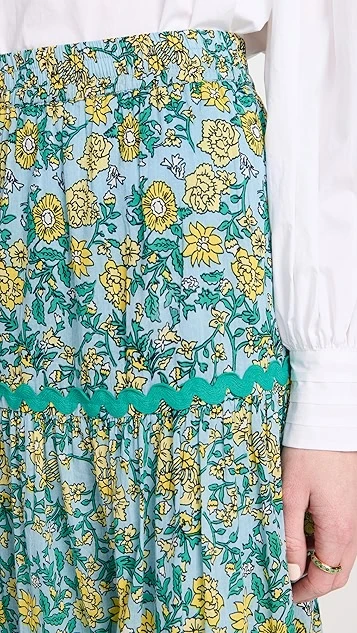 Rickrack trim accentuates the tiered design of this dreamy Ro’s Garden skirt, which is cut for a relaxed fit and accented with a timeless floral print.