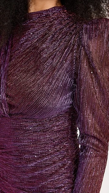 - Long sleeves with padded puff shoulders