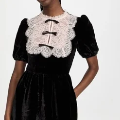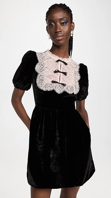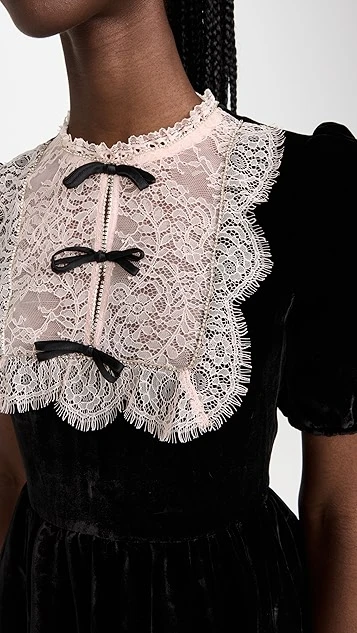 - Lace yoke with crystal trim and fixed bow accents