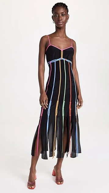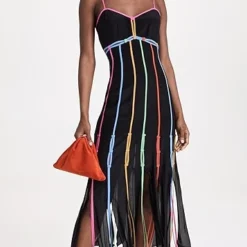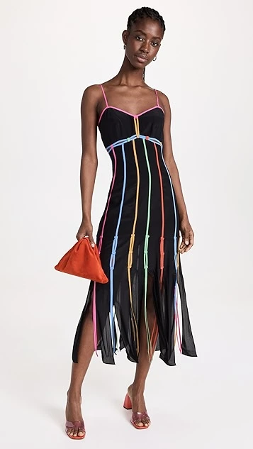 - Contrast trim and fringe hem