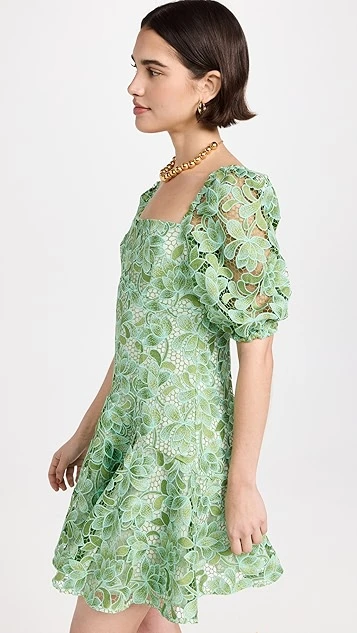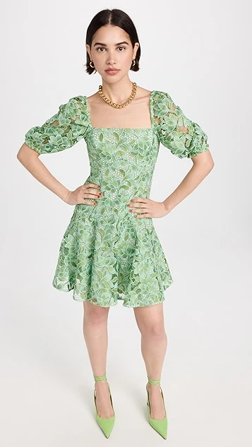 - Elbow-length puff sleeves with elastic cuffs