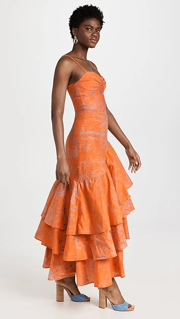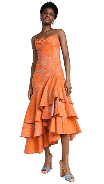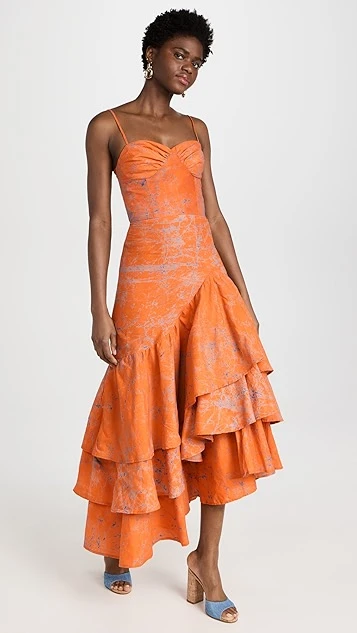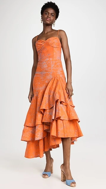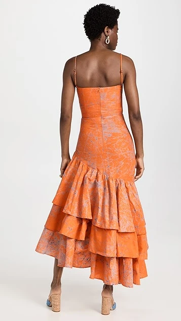 - Asymmetrical tiered ruffle hem