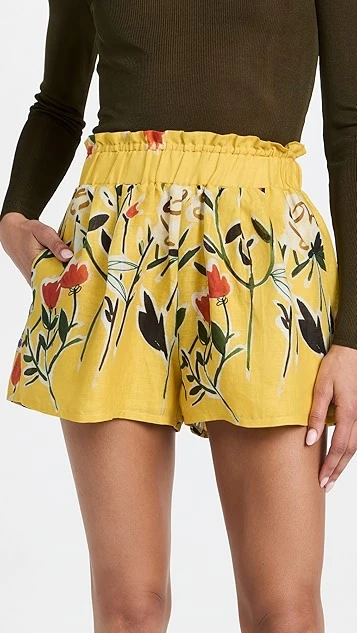 - Ruffle edges and floral print