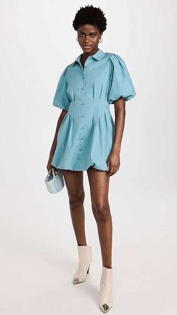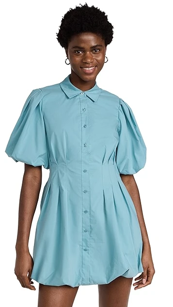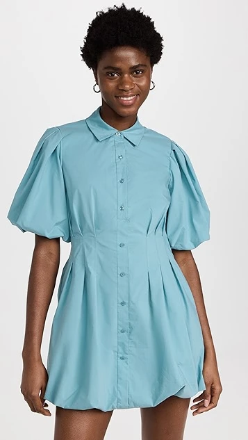 - Pleated waist and puff sleeves