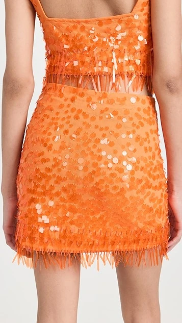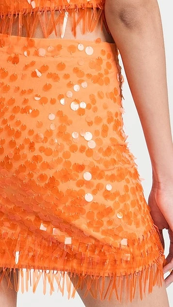 Make a bold and fun statement in this STAUD miniskirt, which features an electric shade of orange and an allover arrangement of varied sequins.