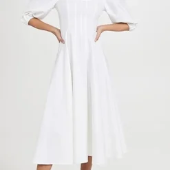 With its square neckline, corseted bodice, and A-line skirt, this linen STAUD dress feels like an instant classic. Finish your outfit with understated pumps for a distinguished look.