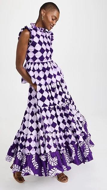- Tiered design and gathered seams