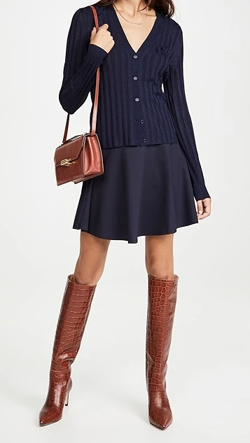 A simple and simply versatile skirt from Susana Monaco, crafted in the label’s signature stretchy jersey and finished with a flared silhouette for a piece that can go with anything polished button downs to sporty tees.