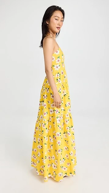 - Asymmetrical tiered skirt seams with ruffle hem