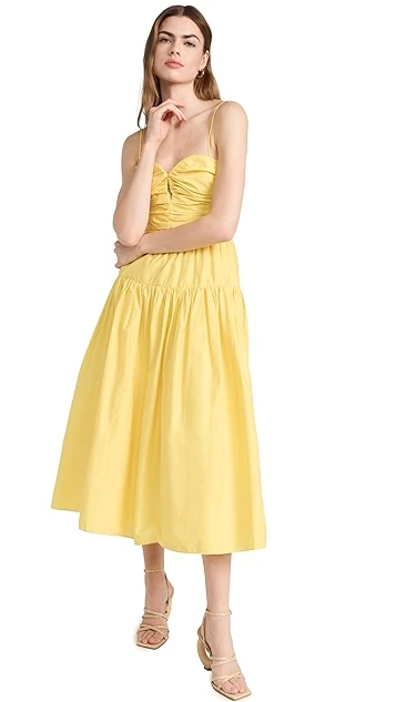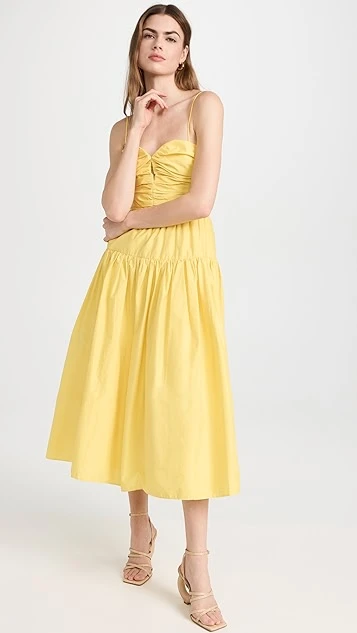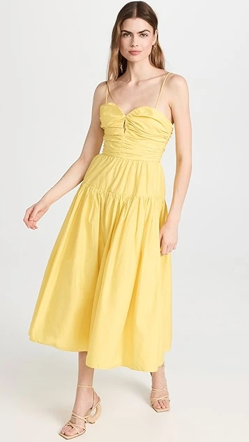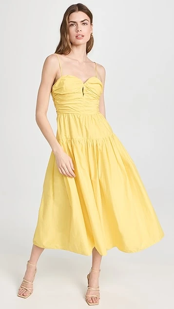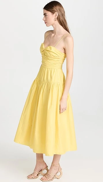- Ruched bodice with keyhole front and boned sides