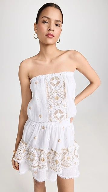 - Strapless silhouette and blouson bodice
