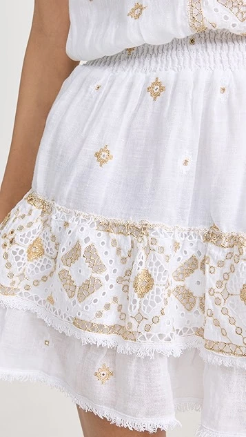 - Tiered ruffle hem with fringe trim