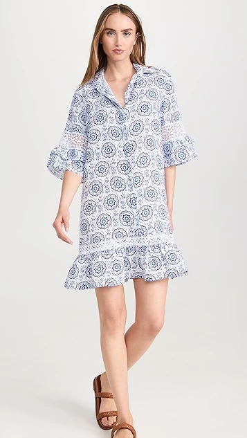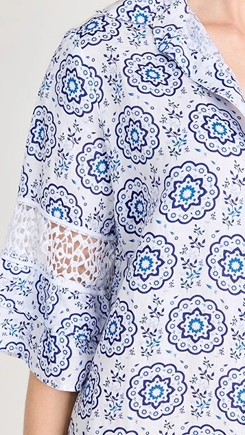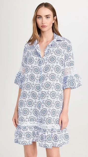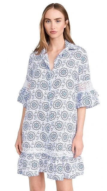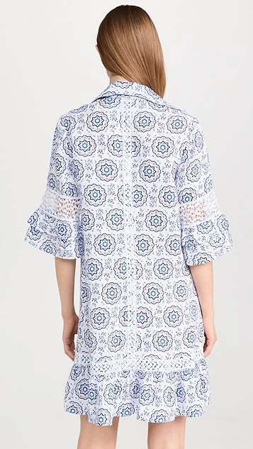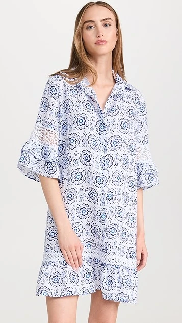 Fresh from the specialists in premium cover ups at Temptation Positano, this linen shift dress is detailed with a captivating geometric pattern, and is accented with subtle lace insets at the sleeves and hem.