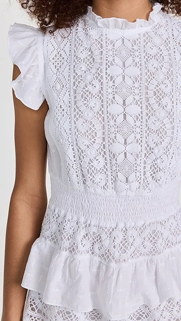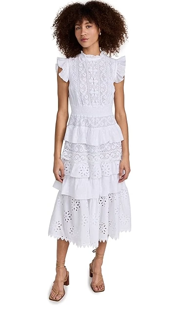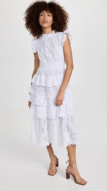 - Tiered skirt with flocked voile and eyelet ruffle trim