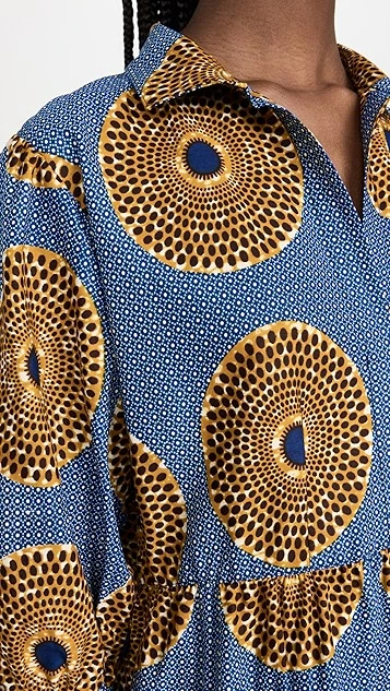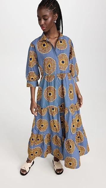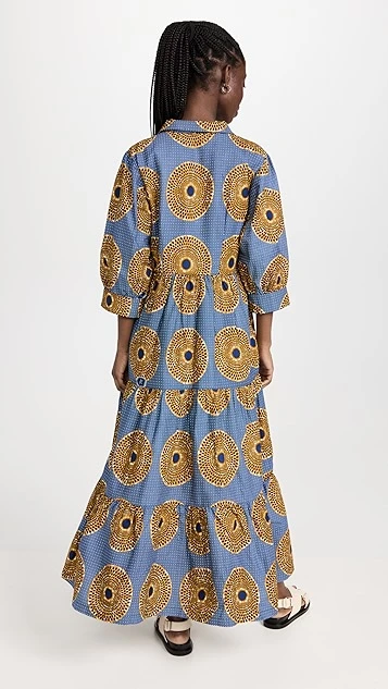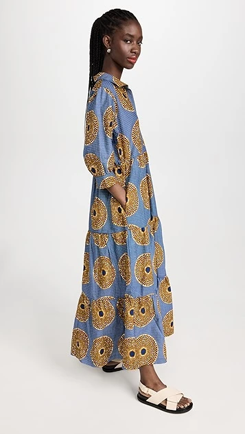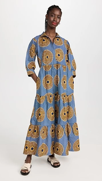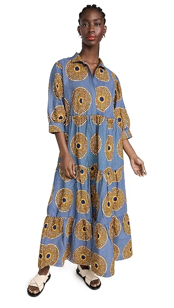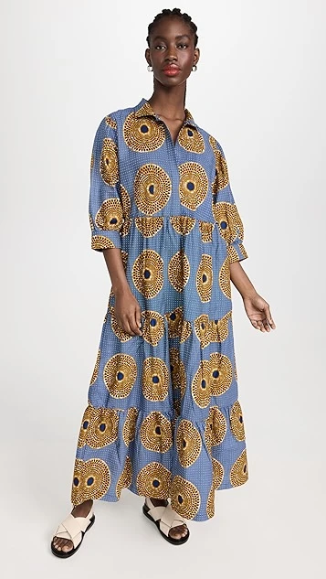 Equally appropriate for sunny afternoons and special occasions, this the Oula Company midi dress spotlights a vivid abstract pattern and a tiered design. Round out your outfit with the sandals of your choice.