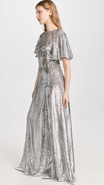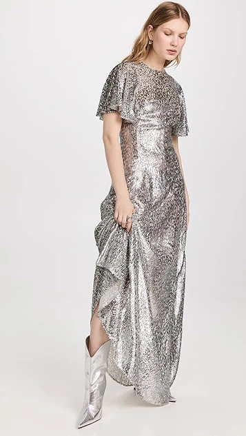 - Fabric: Lightweight, non-stretch metallic flocked weave