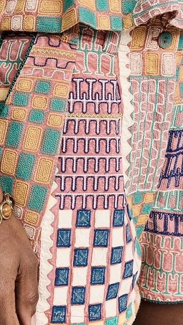 - Patchwork design and embroidered check pattern